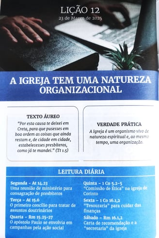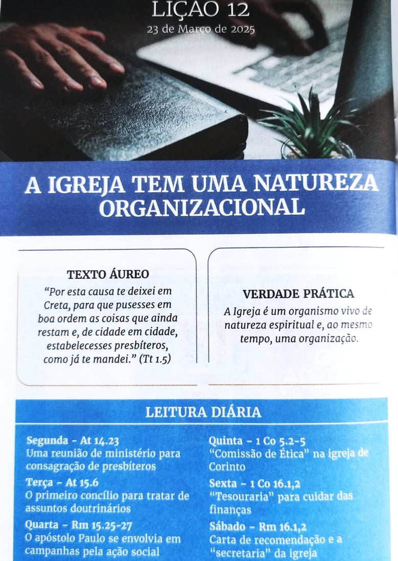3. CITE TRÊS EXEMPLOS BÍBLICOS EM FAVOR DA ORGANIZAÇÃO ECLESIÁSTICA.